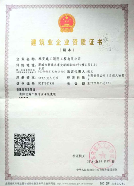 具有建筑消防設(shè)施貳級施工資質(zhì)